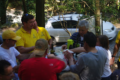 Como não podia deixar de ser, os nossos amigos alentejanos apresentaram um farnel rico em chouriços e várias qualidades de "belo tintol", que generosamente partilharam com os restantes caminheiros.